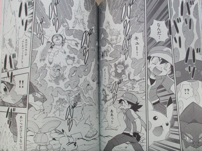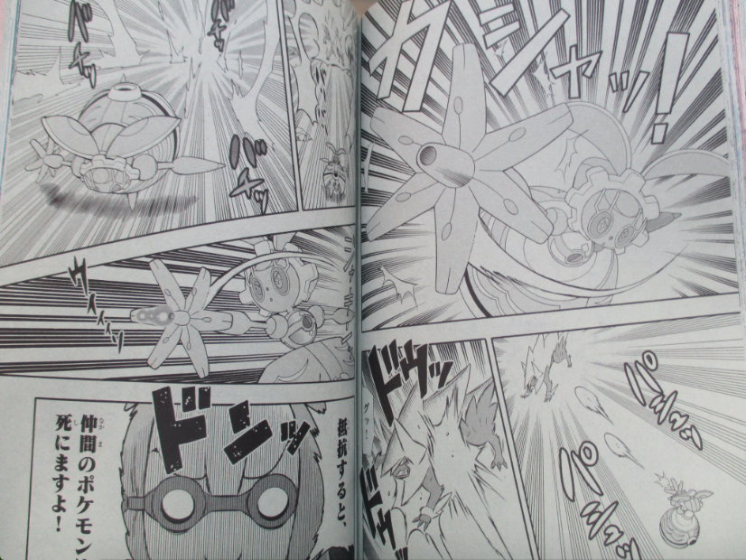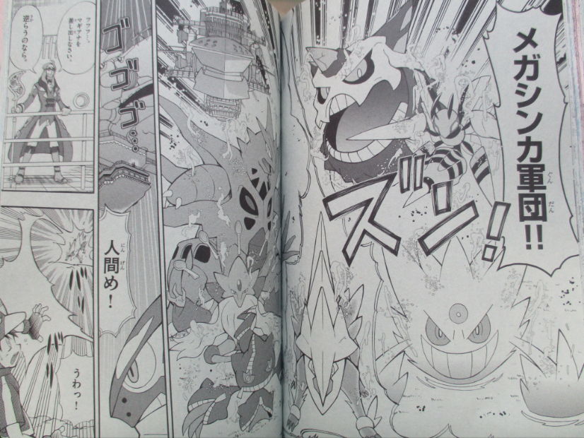 Estas scans já mostram Magearna e um pouco do vilão do filme e das suas mega evoluções. Estas lançam um ataque poderoso que destroem tudo à sua volta... Que será que aconteceu a Ash nas últimas scans?